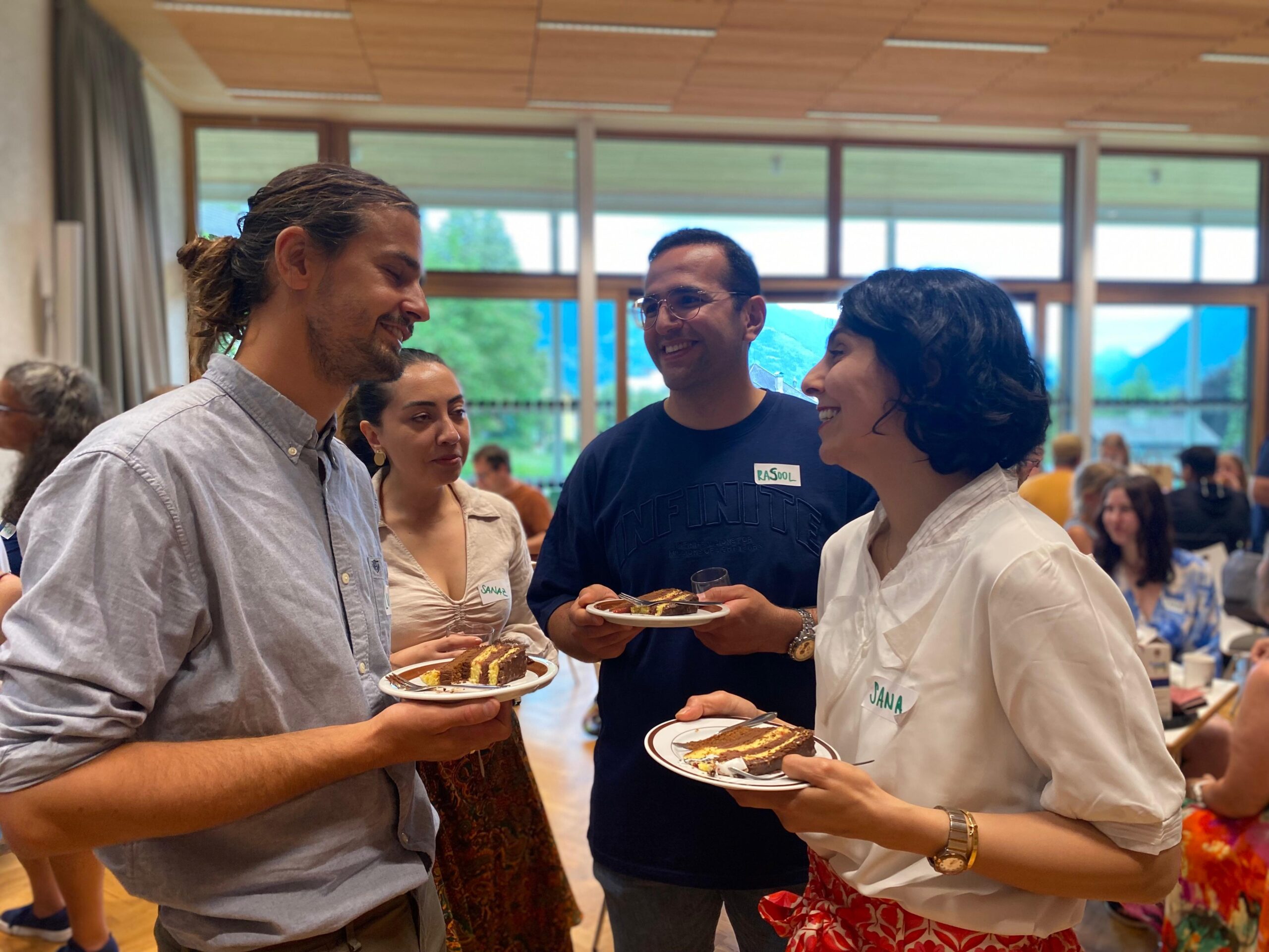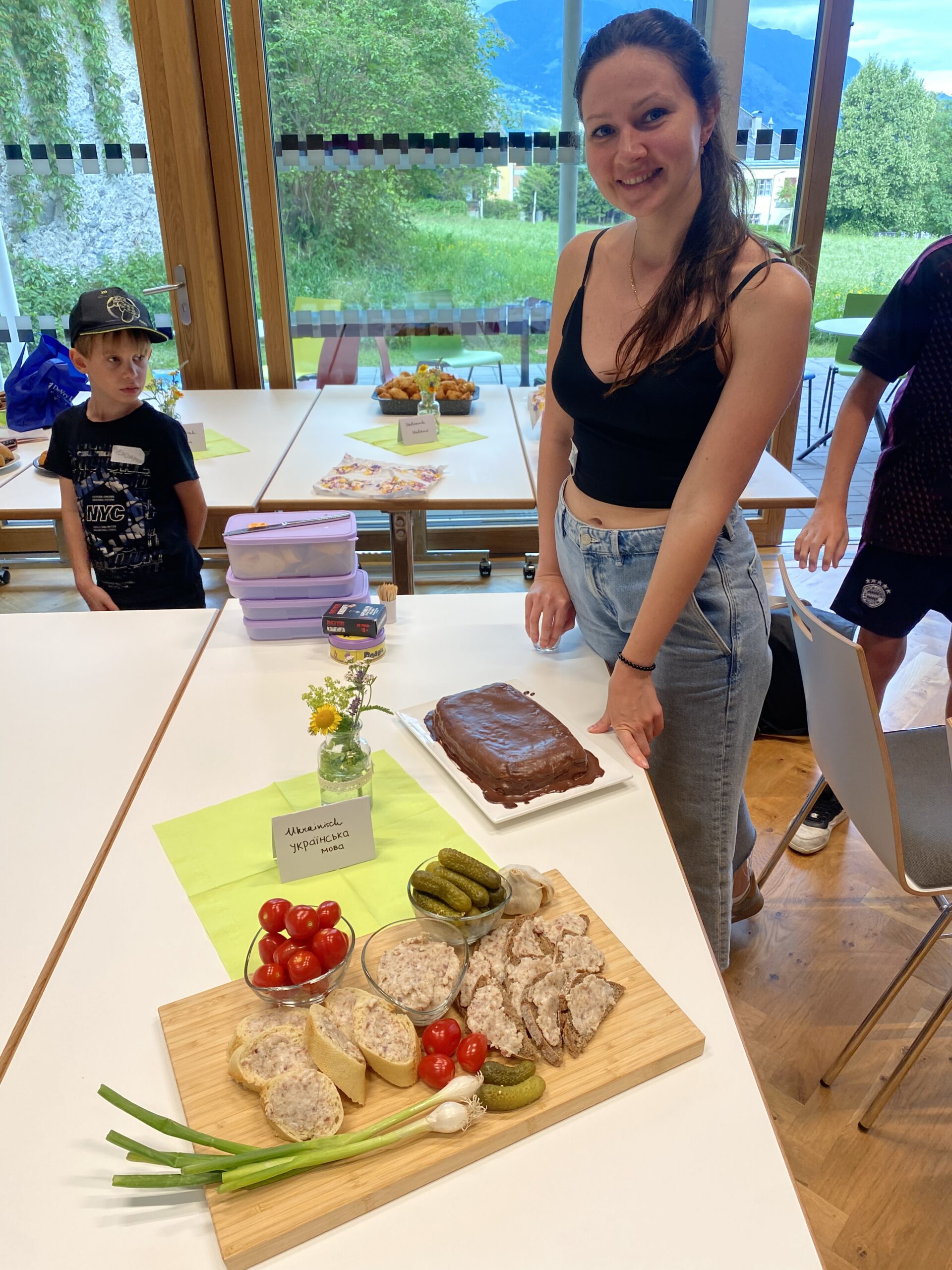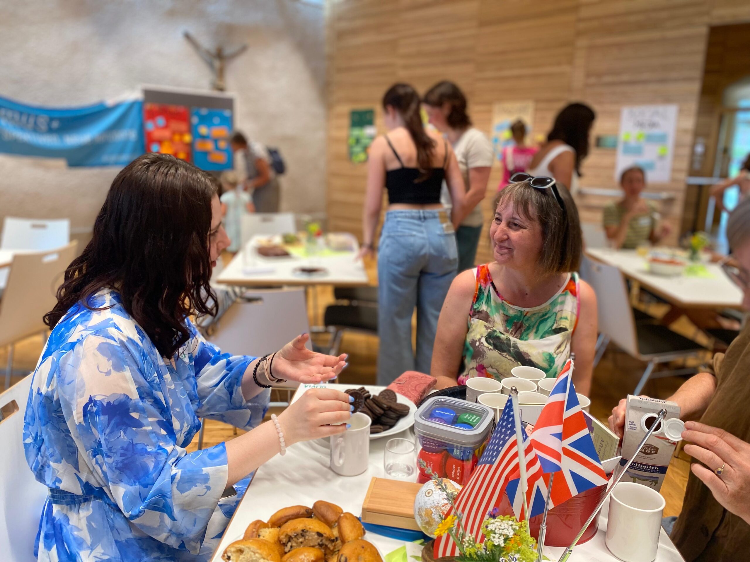Im Anschluss fand ein Sprachencafè statt. Deutsch, Englisch, Italienisch, Französisch, Ukrainisch, Ungarisch, Farsi und Türkisch wurde an acht Tischen gesprochen und spannende Einblicke in das jeweilige Land bzw. die jeweilige Region gewonnen. Abgerundet wurde das Sprachencafè mit der passenden kulinarischen Begleitung, die unsere Tischgastgebenden selbst mitgebracht hatten.