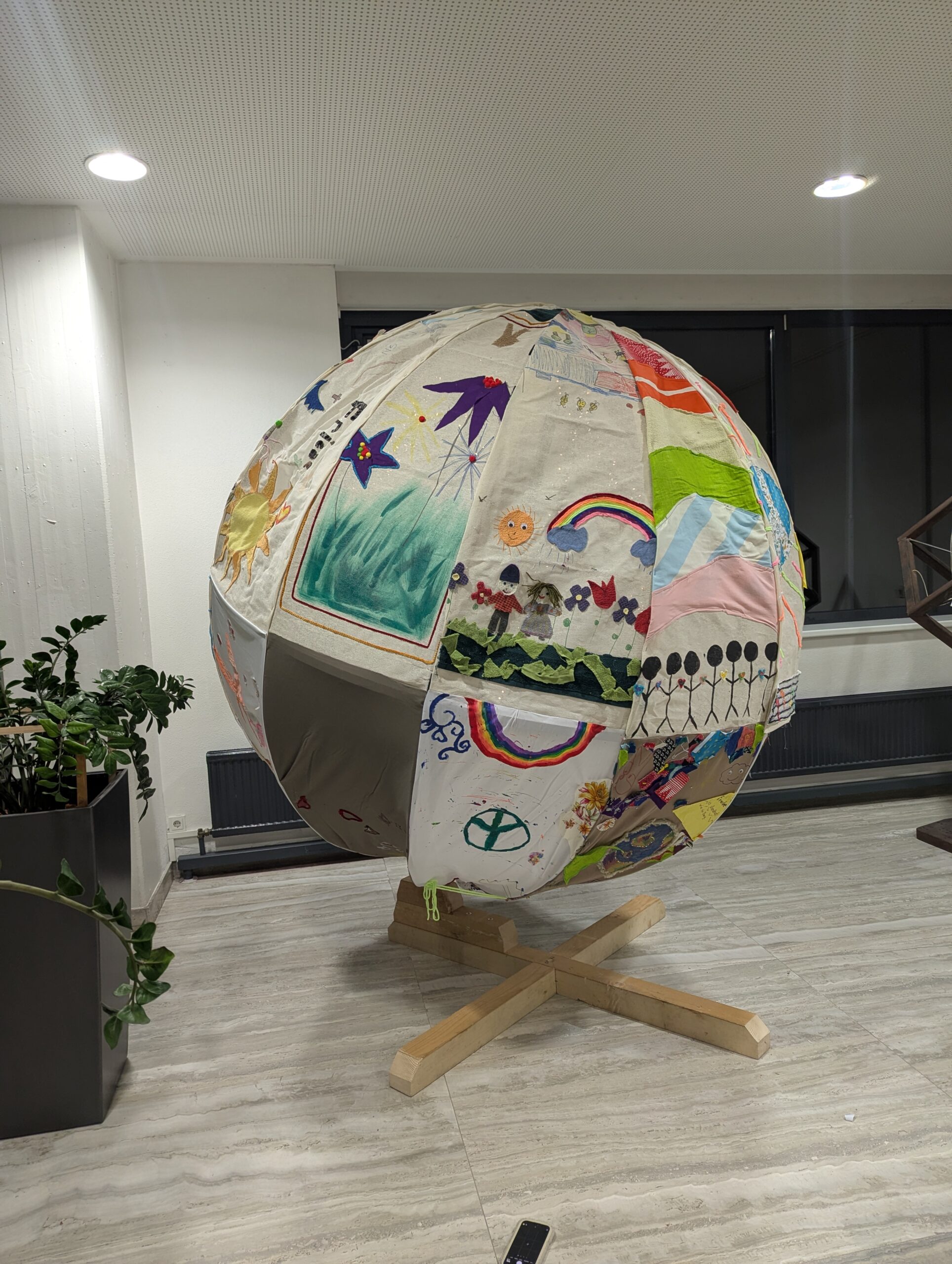 Eineinhalb Tage hämmerten, sägten, schneiderten und malten über zwanzig Teilnehmende mit verschiedensten Hintergründen und Zugängen an dem Kunstwerk. Als Ergebnis entstand eine Weltkugel und vierundzwanzig individuell gestaltete Segel. Die Teilnehmenden stellten sich Fragen wie „Was ist Frieden für mich, wie fühlt er sich an und wann fühle ich mich friedlich?“. Die Motive welche die Zeit in der Natur, mit der Familie, Freunden oder Haustieren sowie Jugendtrends, religiösen Praktiken oder Abstraktionen beinhalten, zeigen wie universell wir alle fühlen. Der geschaffene Globus wird in nächster Zeit auch weiterwandern und an verschiedenen Orten zu sehen sein.